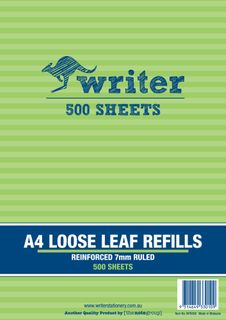 Writer A4 500lf 7mm Ruled Reinforced Refills