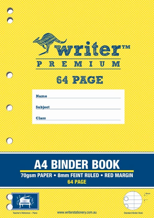Writer Premium A4 64pg 8mm Ruled Binder Book