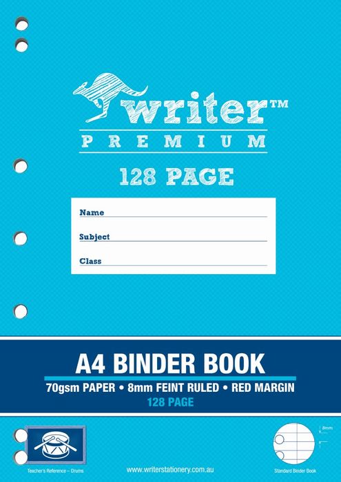 Writer Premium A4 128pg 8mm Ruled Binder Book