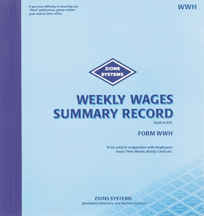 Weekly Wages Summary Book - Form WWH (duplicate)
