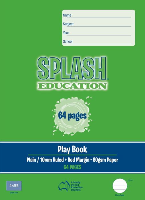 Splash 330x240mm 64pg Plain/10mm Solid Ruled Playbook