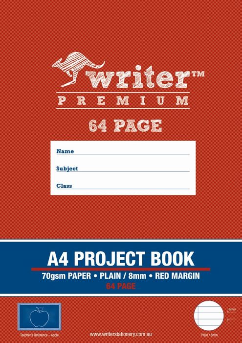 Writer Premium A4 64pg Plain/8mm Ruled Project Book
