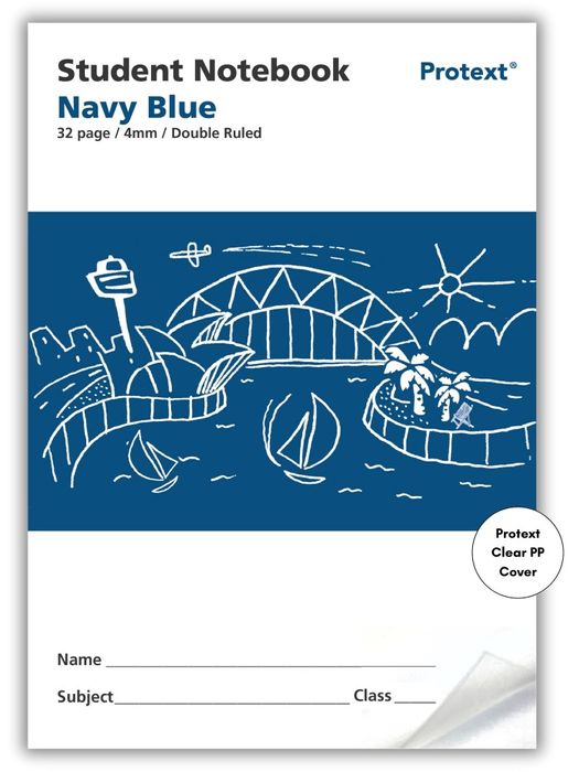 Protext Navy Blue 32pg 4mm Double Ruled Student Notebook