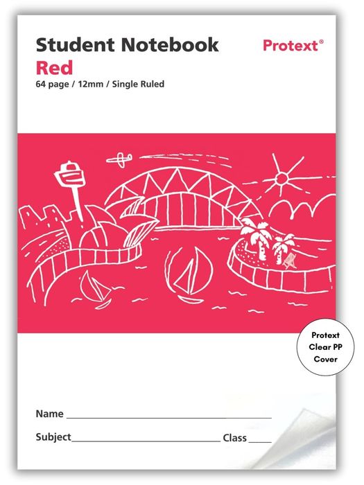 Protext Red 64pg 12mm Single Ruled Student Notebook