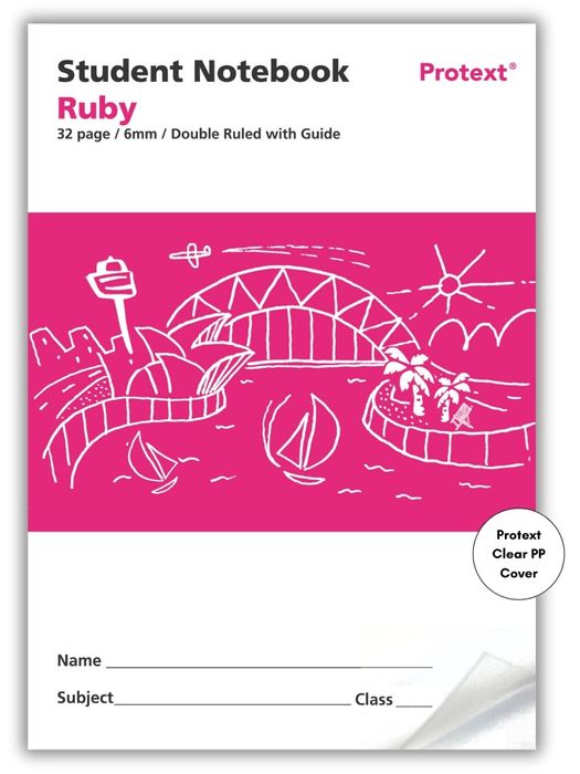 Protext Ruby 32pg 6mm Double Ruled/Guide Student Notebook