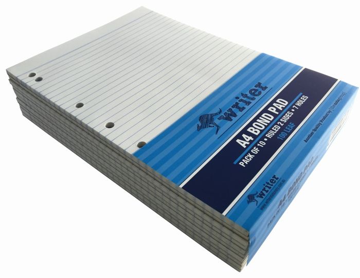 Writer A4 100lf Bond Ruled Notepad + 7 holes