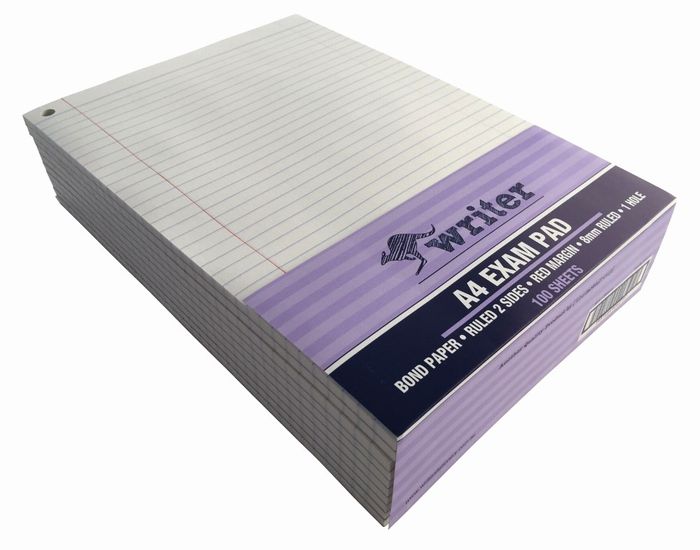 Writer A4 100 Sheet Exam Notepad + 1 Hole