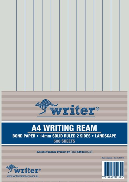 Writer A4 14mm Solid Ruled Landscape 500 Sheet Ream