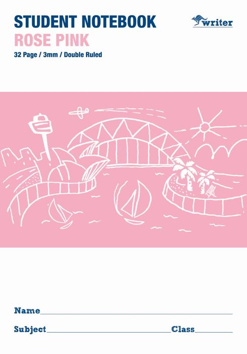 Writer Rose Pink 32pg 3mm Double Ruled Student Notebook