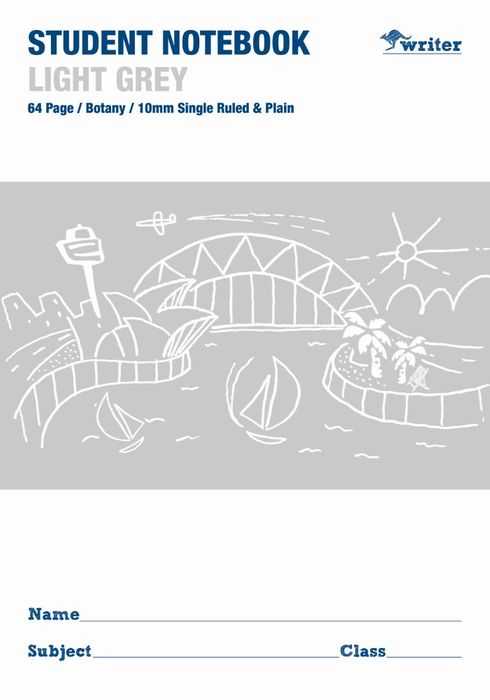 Writer Light Grey 64pg 10mm Single Ruled/Plain Student Notebook