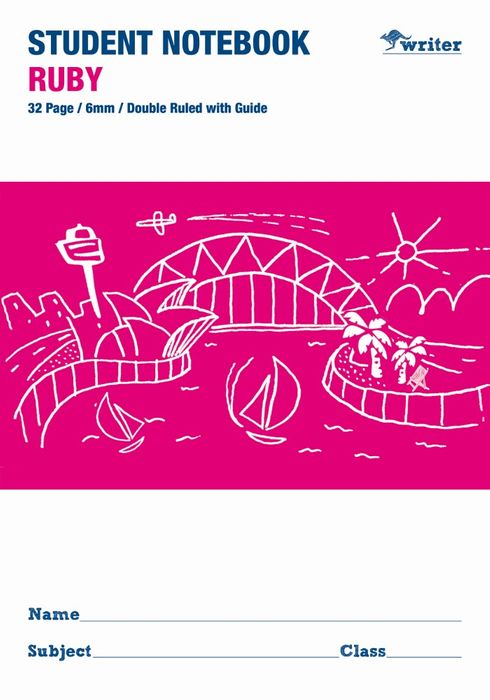 Writer Ruby 32pg 6mm Double Ruled/Guide Student Notebook