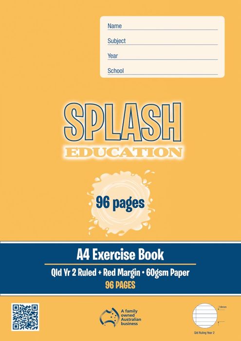 Splash A4 96pg Qld Yr2 Ruled Exercise Book